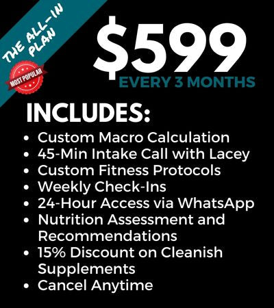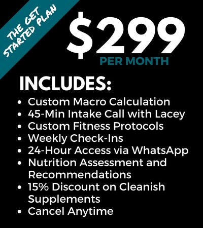 With coaching, I do an in-depth eval of your current status (nutrition, fitness, activity level), and then I create custom macronutrient goals and fitness protocols to reach your goals in a sustainable, progressive way.